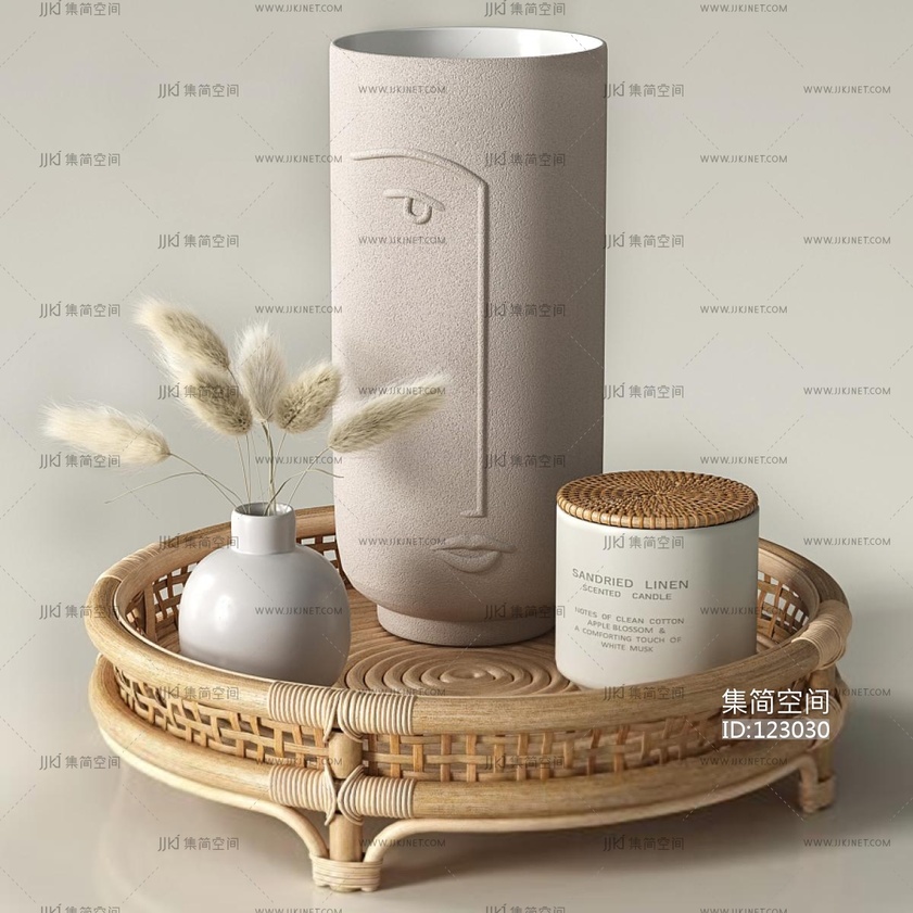 现代装饰品摆件_书籍_花瓶3D模型3d模型下载