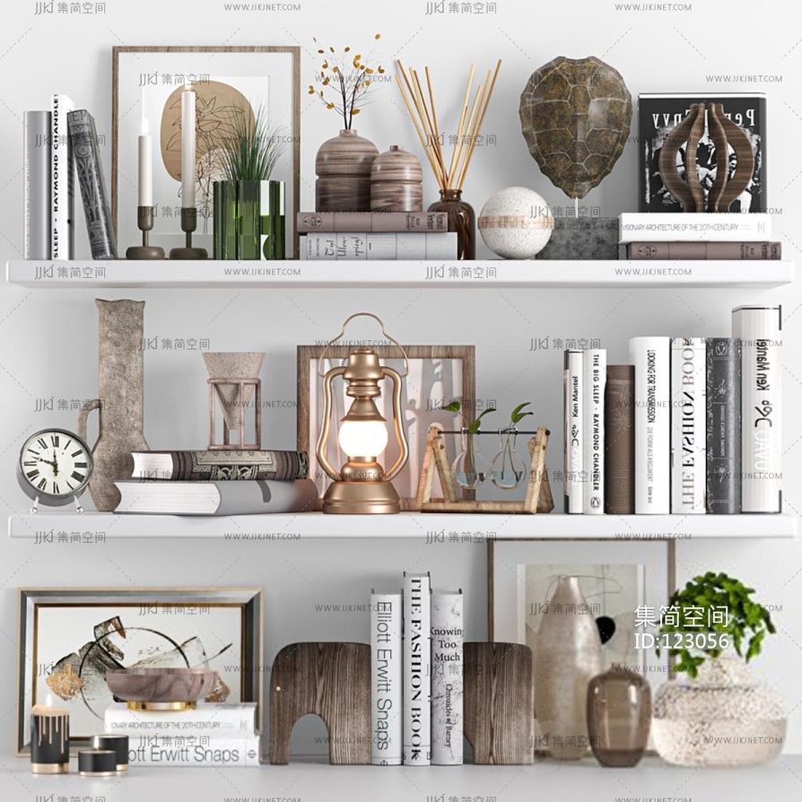 现代装饰品摆件_书籍_花瓶3D模型3d模型下载