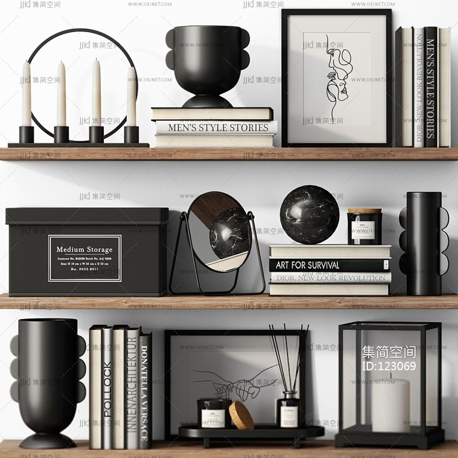 现代装饰品摆件_书籍_花瓶3D模型3d模型下载