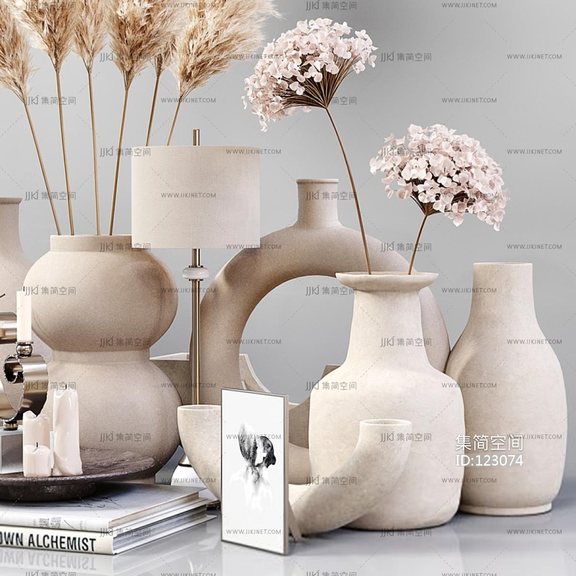 现代装饰品摆件_书籍_花瓶3D模型3d模型下载