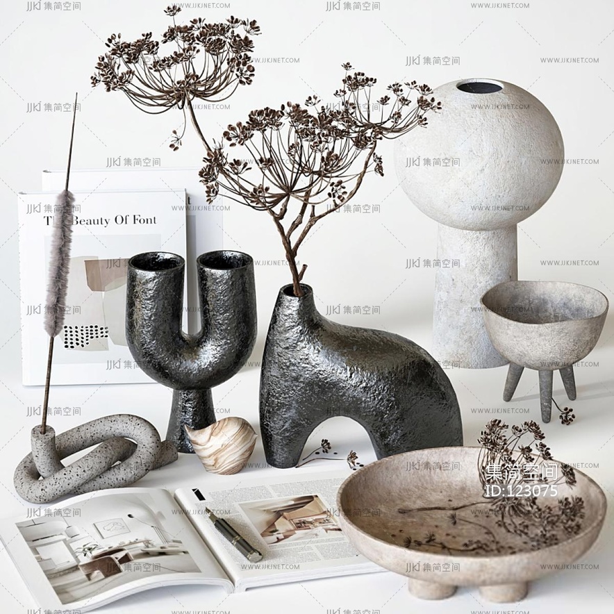 现代装饰品摆件_书籍_花瓶3D模型3d模型下载
