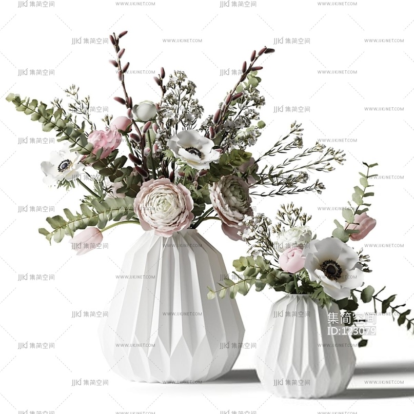 现代花艺__玻璃花瓶_鲜花_插花_装饰摆件3D模型3d模型下载