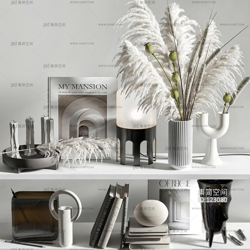 北欧芦苇花瓶书籍摆件 3d模型下载 [模型ID:123080]