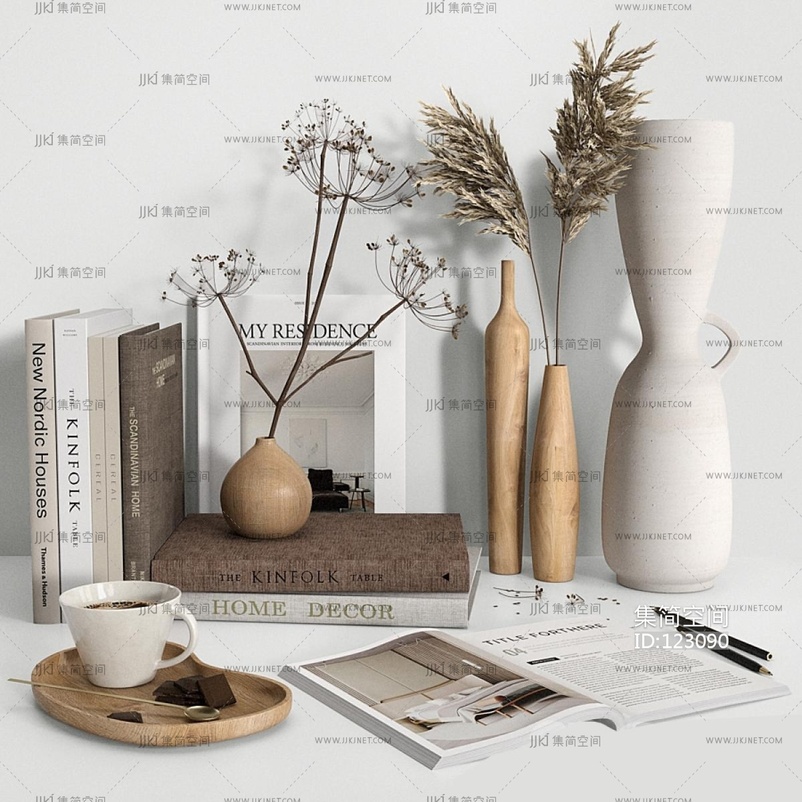 北欧装饰品摆件杂志书本咖啡杯 3d模型下载 [模型ID:123090]