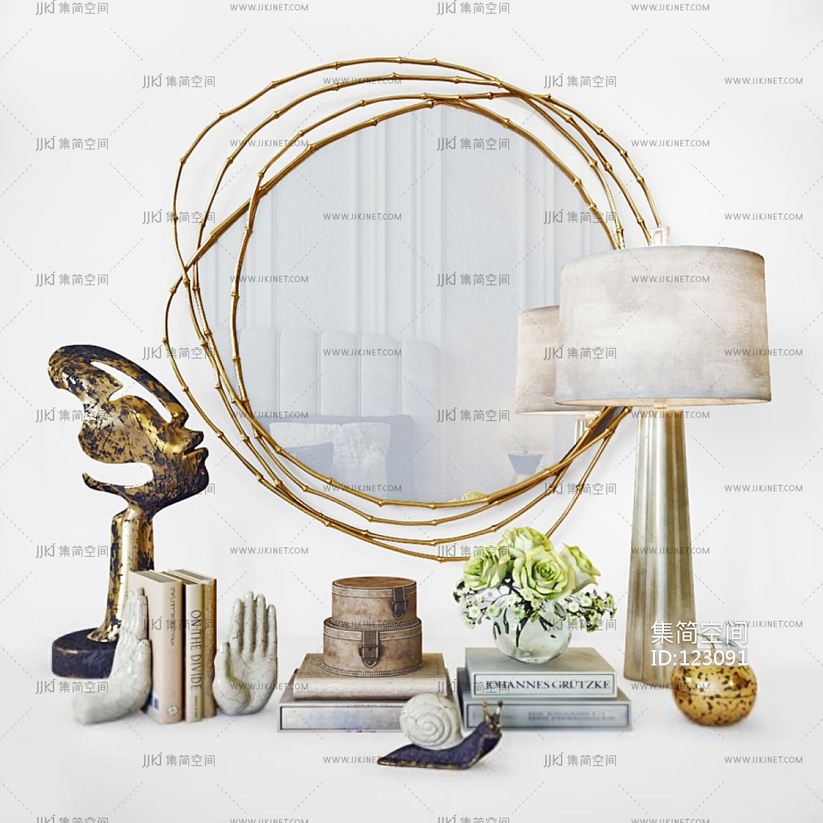 现代简欧式镜子台灯雕塑书籍摆件 3d模型下载 [模型ID:123091]