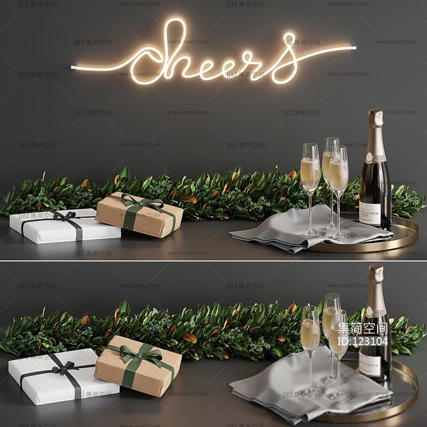 现代香槟酒礼盒红酒托盘礼物和 3d模型下载 [模型ID:123104]
