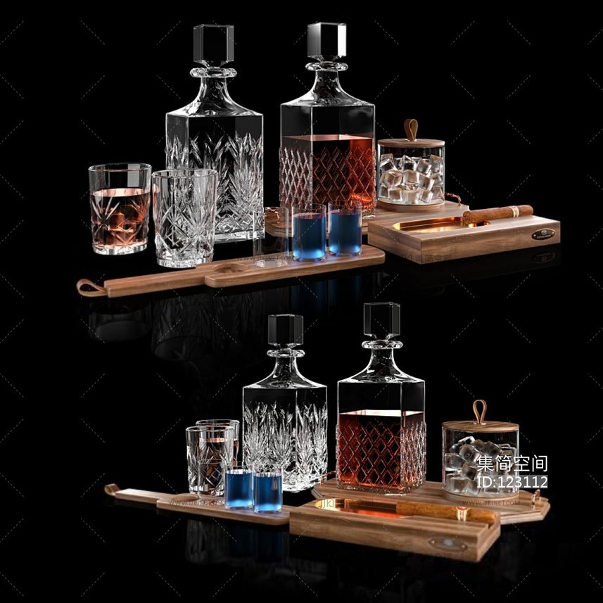 现代雪茄酒瓶酒杯洋酒 3d模型下载 [模型ID:123112]