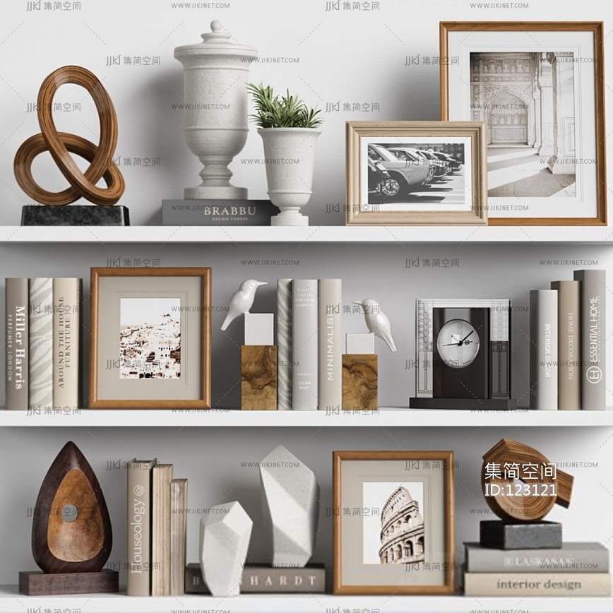现代装饰品摆件_书籍_花瓶3D模型3d模型下载