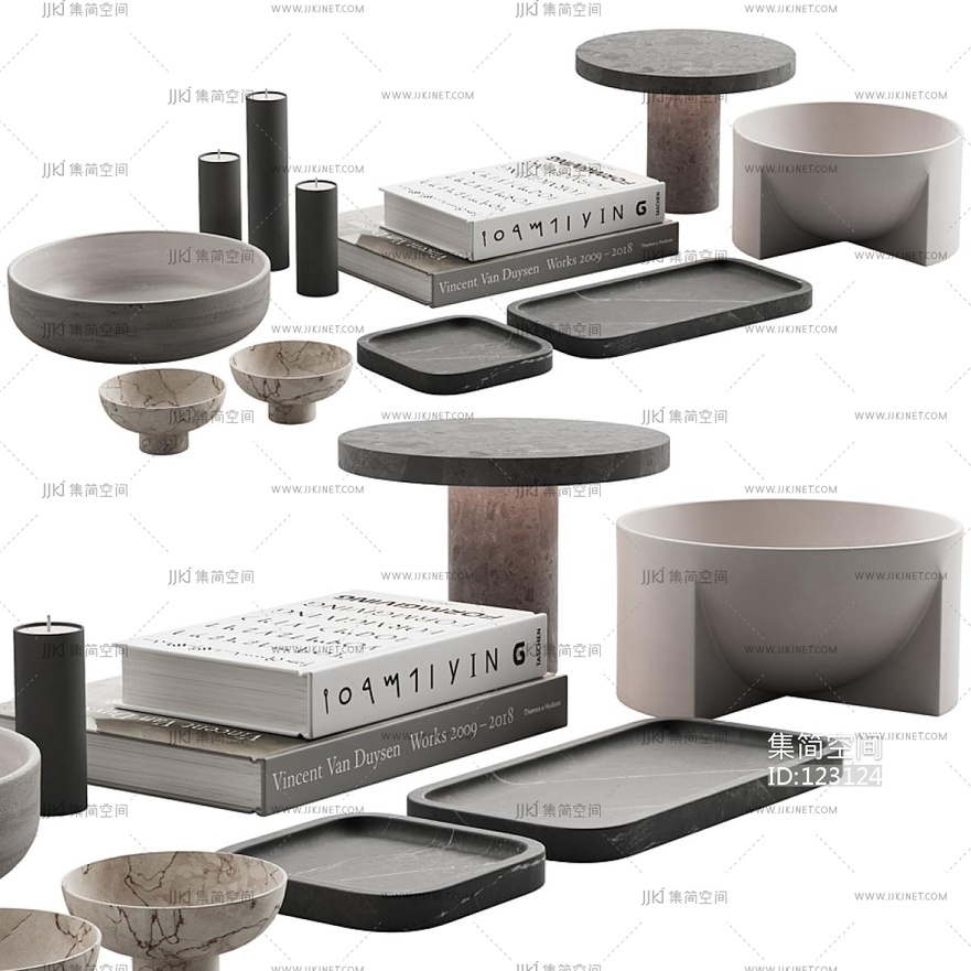 现代陶瓷碗边几装饰品组合 3d模型下载 [模型ID:123124]