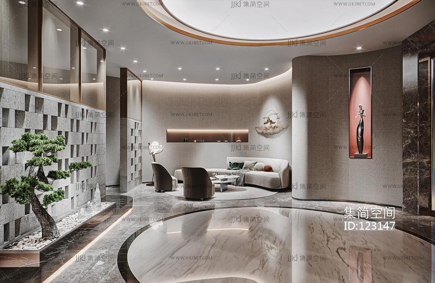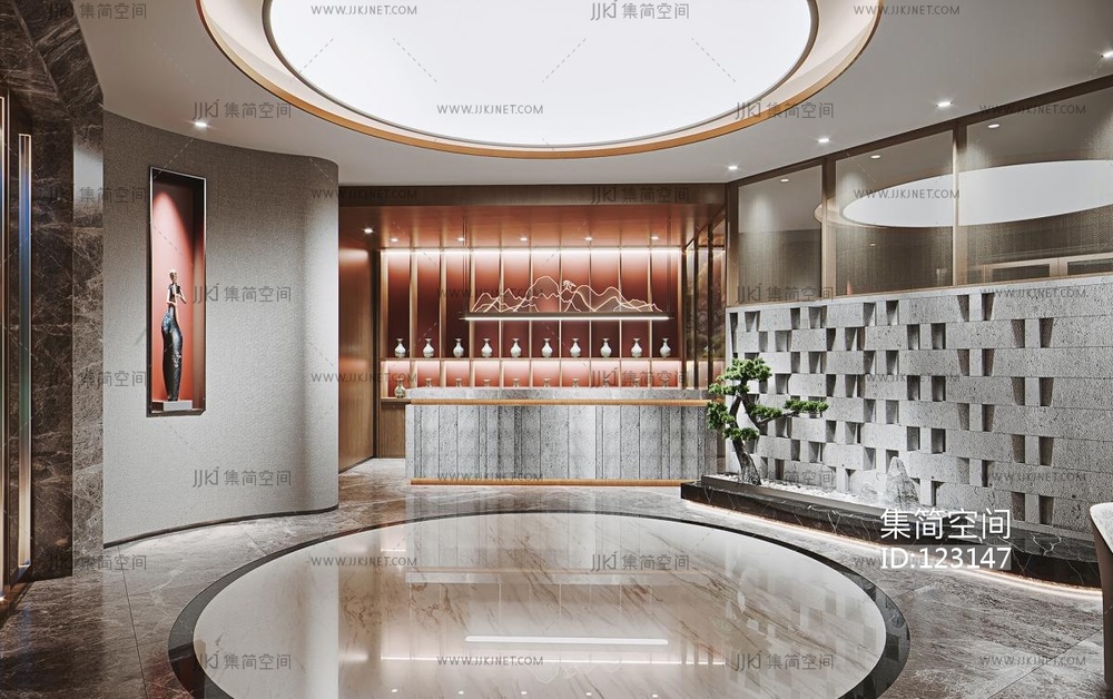 新中式酒店会所大厅服务台 3d模型下载 [模型ID:123147]