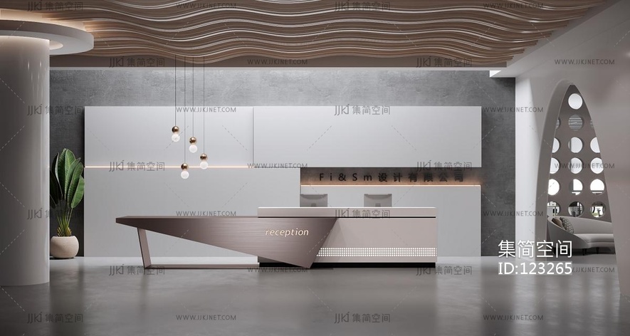 现代办公前台接待处,接待台服务台,大厅 3d模型下载 [模型ID:123265]