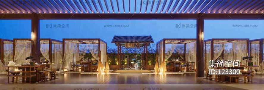 中式景观庭院阳台 3d模型下载 [模型ID:123300]