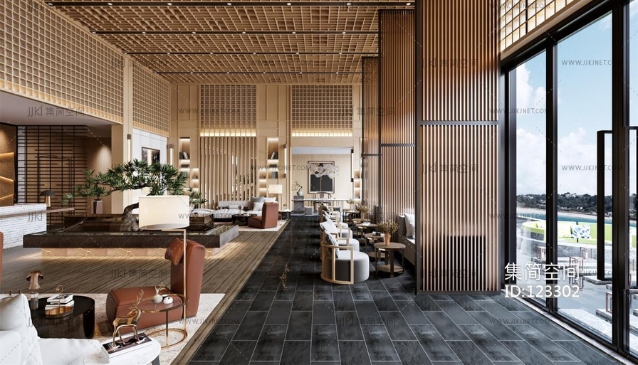 中式 酒店 大堂 洽谈区 3d模型下载 [模型ID:123302]