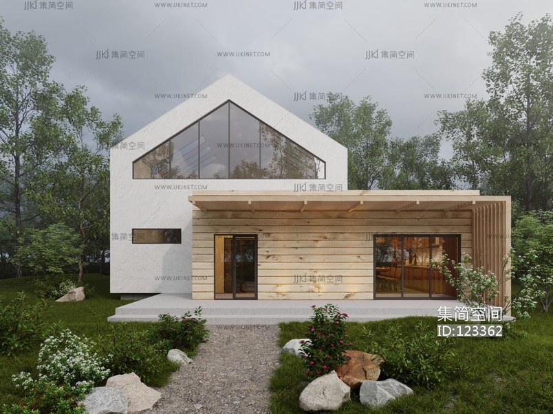 现代别墅,石头景观园林绿化 3d模型下载 [模型ID:123362]