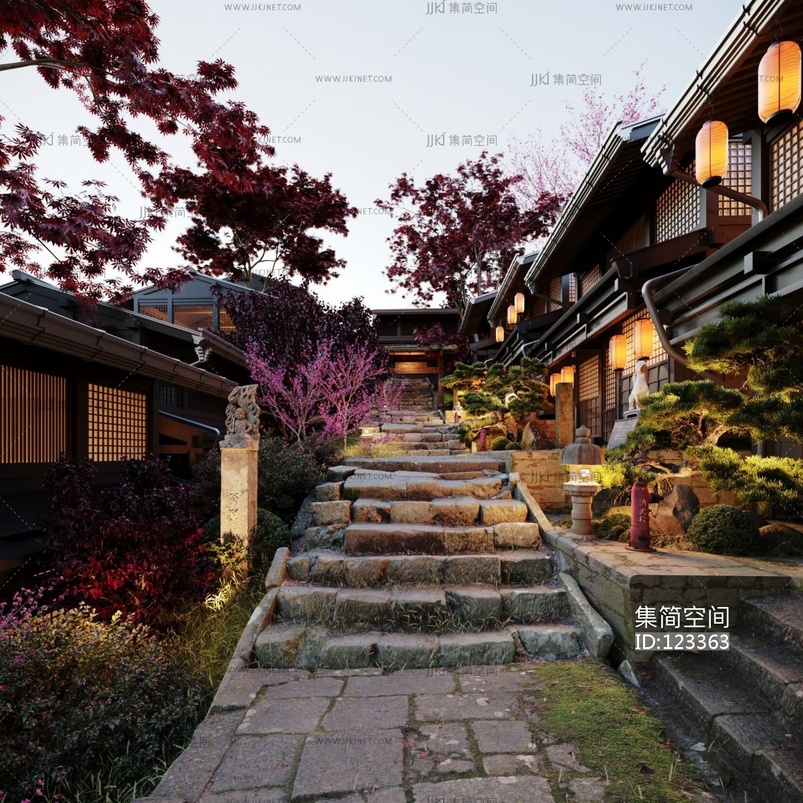 日式度假酒店民宿外观 3d模型下载 [模型ID:123363]