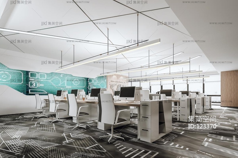 现代公共办公室 ,开敞办公区 3d模型下载 [模型ID:123370]