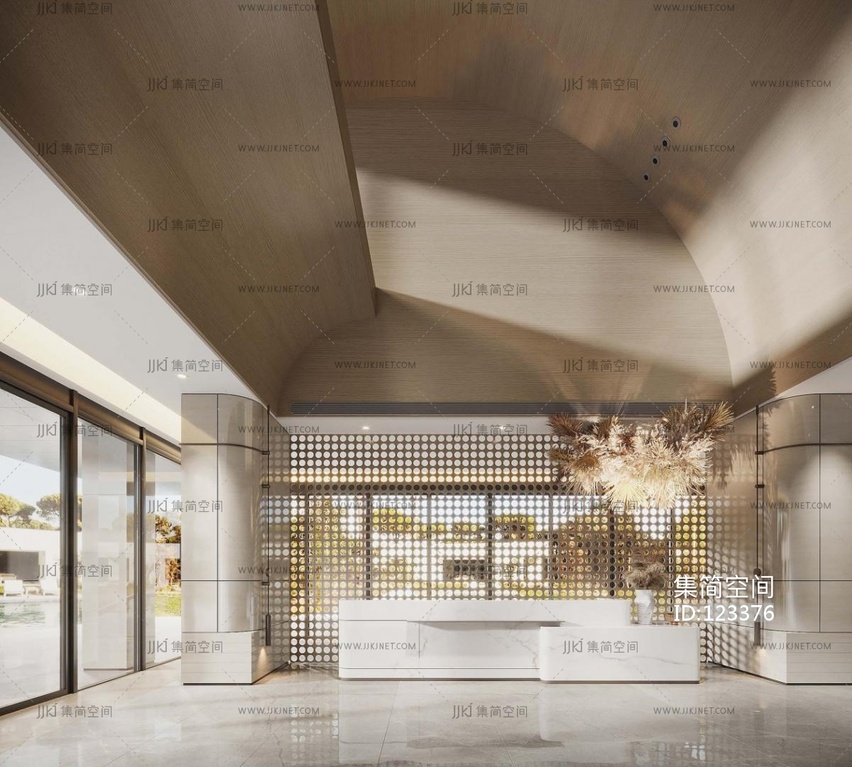现代售楼处前台接待台大厅 3d模型下载 [模型ID:123376]