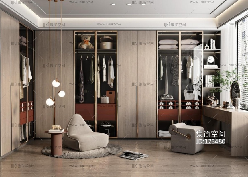 现代衣帽间 3d模型下载 [模型ID:123480]