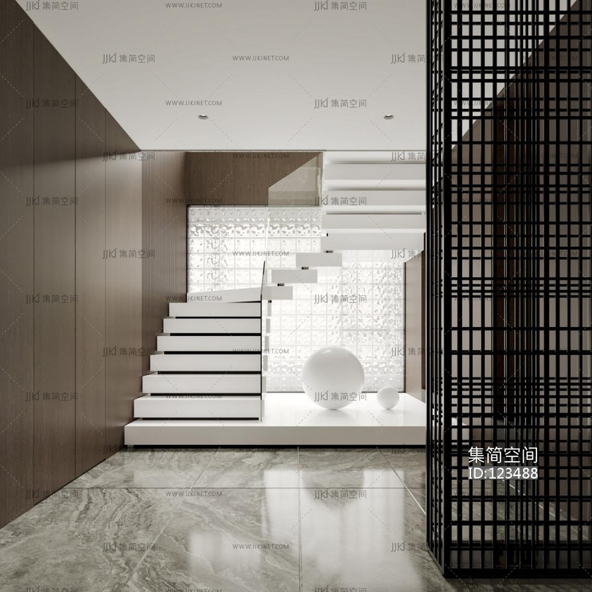 现代楼梯间 3d模型下载 [模型ID:123488]