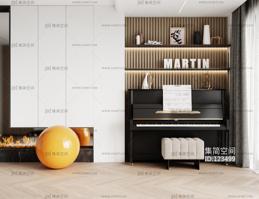 侘寂衣帽间钢琴钢琴房3d模型下载