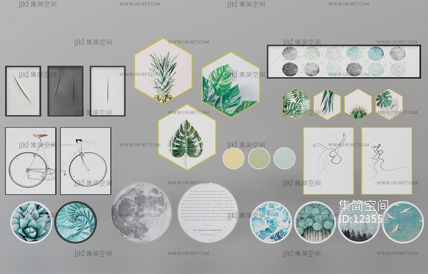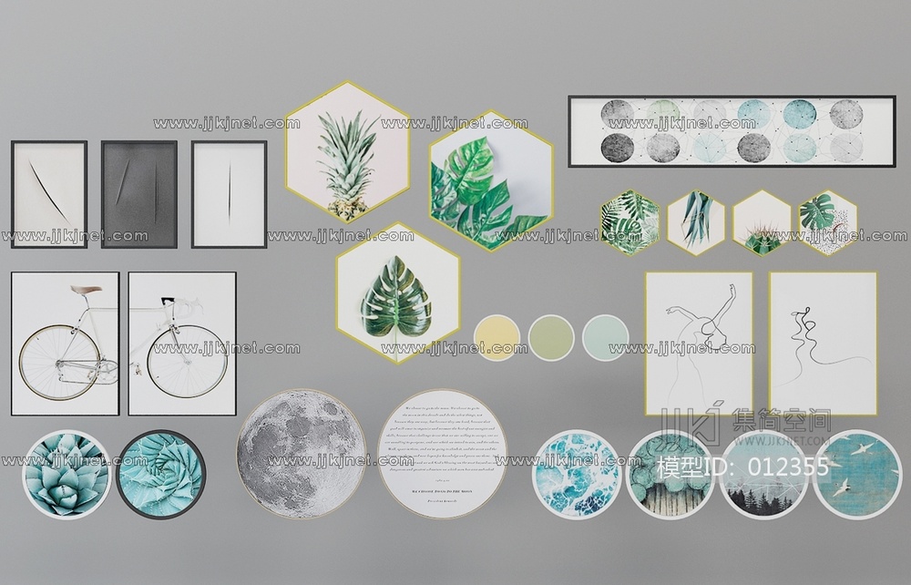 法式中古挂画_装饰画_组合3D模型3d模型下载