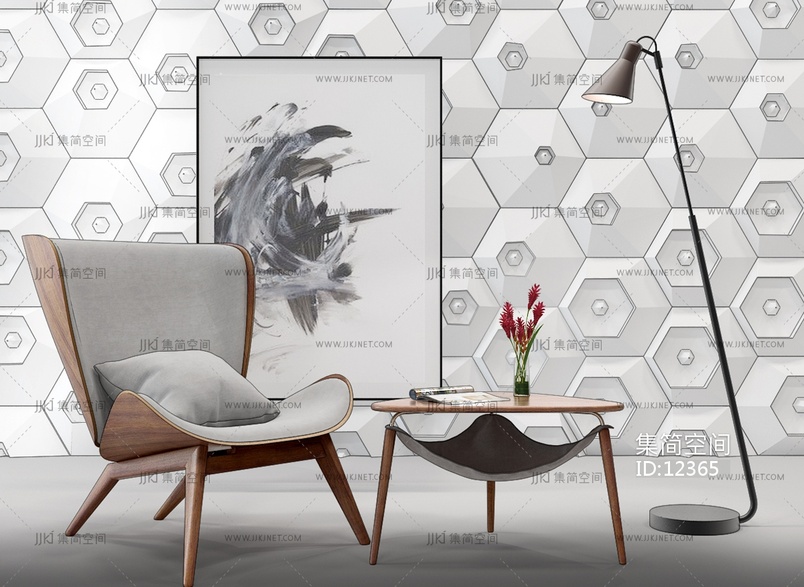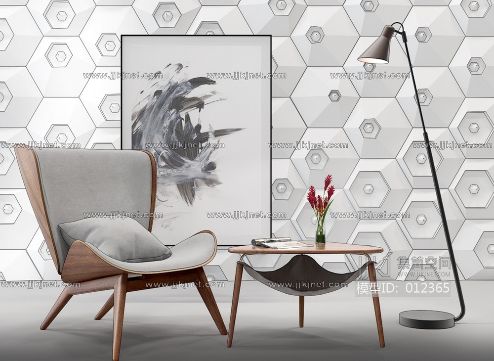 Z11-1120北欧休闲沙发休闲椅边几落地灯组合 3d模型下载 [模型ID:12365]
