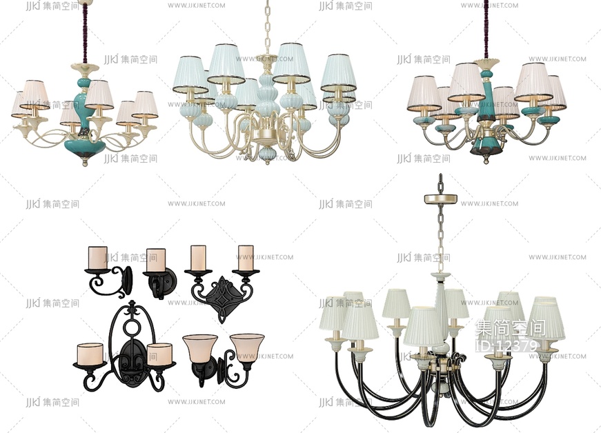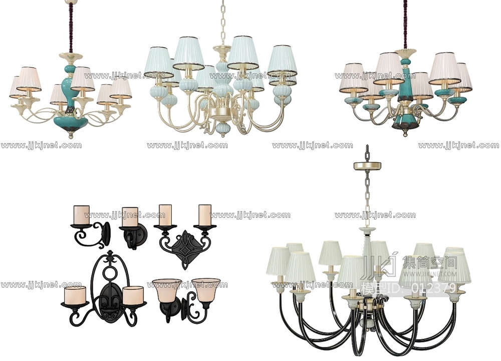 Z26-1120美式轻奢欧式法式多头吊灯单双头壁灯组合 3d模型下载 [模型ID:12379]