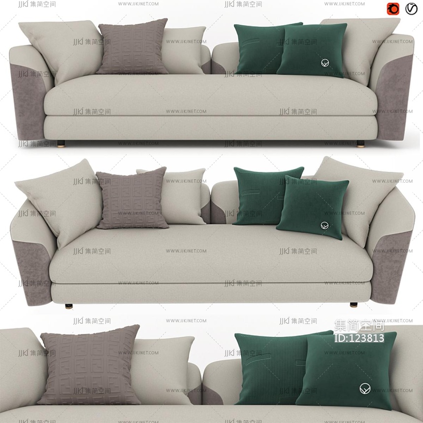 现代沙发三人沙发拼接沙发3D模型3d模型下载