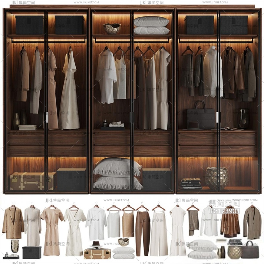 现代衣柜,衣服,皮包鞋子,皮箱 3d模型下载 [模型ID:123901]