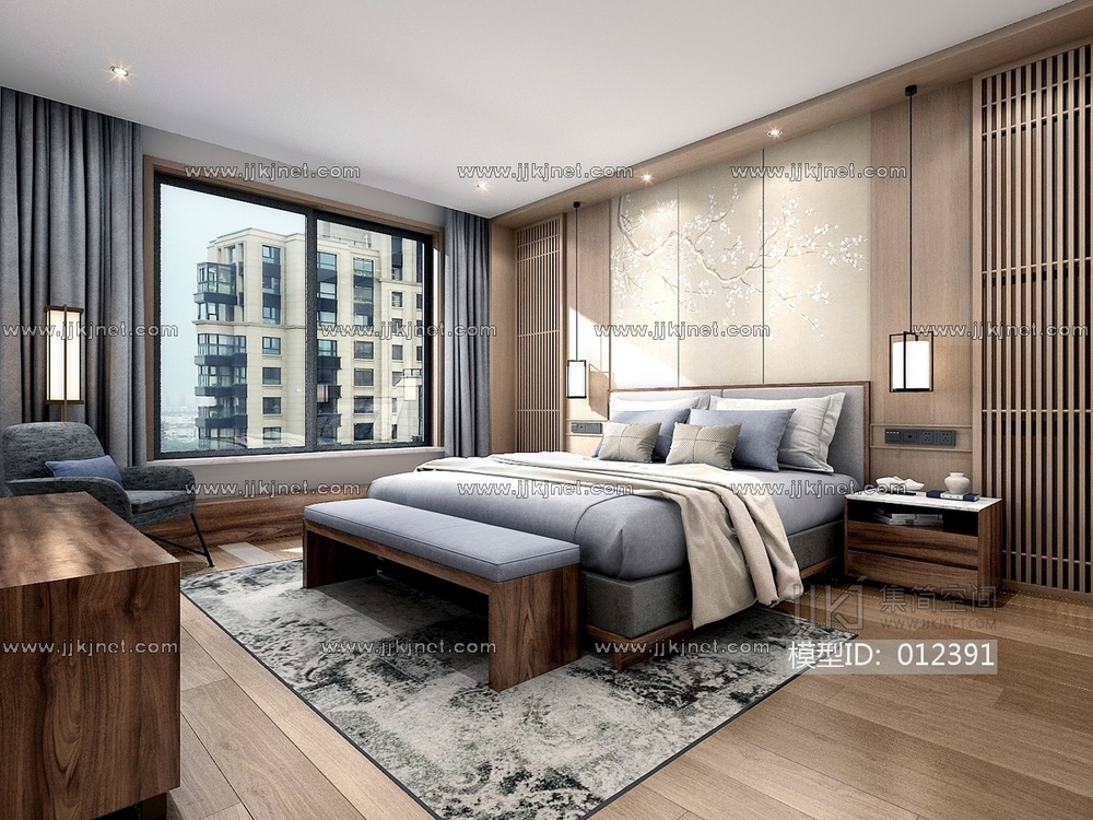 新中式卧室床 3d模型下载 [模型ID:12391]
