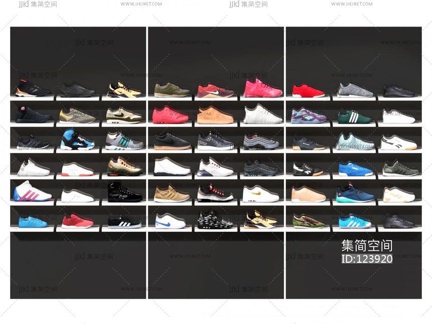 现代品牌运动鞋休闲鞋潮鞋组合 3d模型下载 [模型ID:123920]