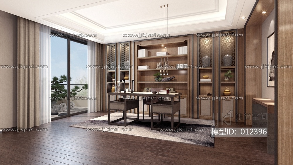 G06-01004新中式书房书桌书柜松树 3d模型下载 [模型ID:12396]