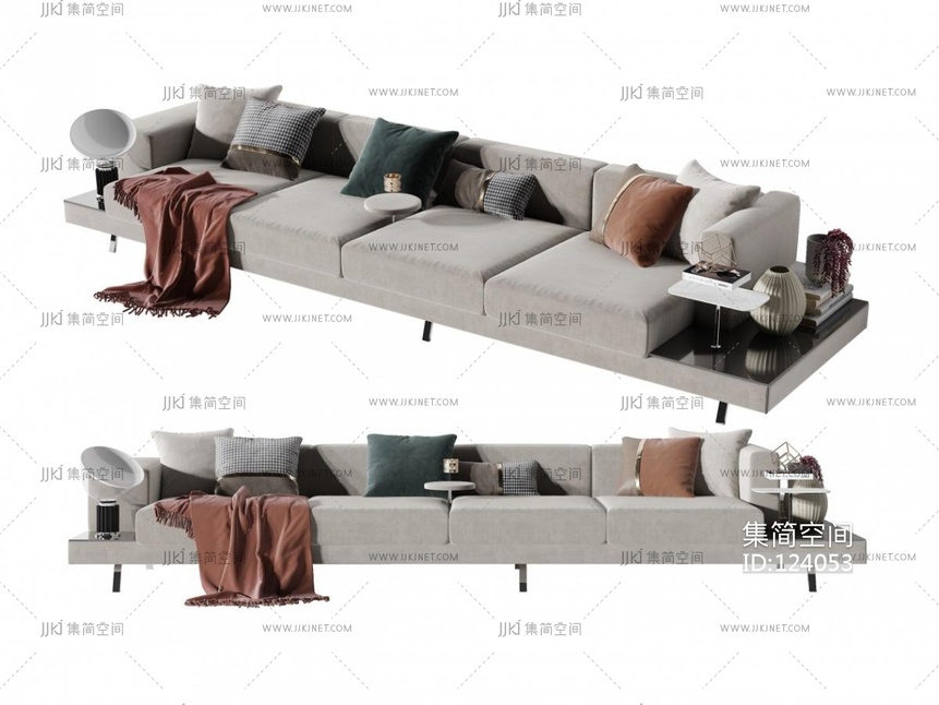 现代三人沙发 抱枕 组合 3d模型下载 [模型ID:124053]