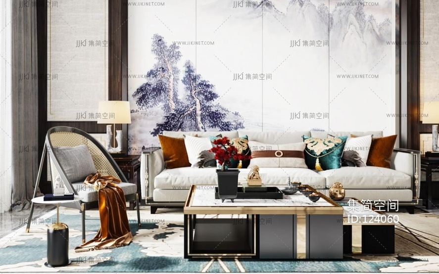 新中式沙发茶几组合 3d模型下载 [模型ID:124060]