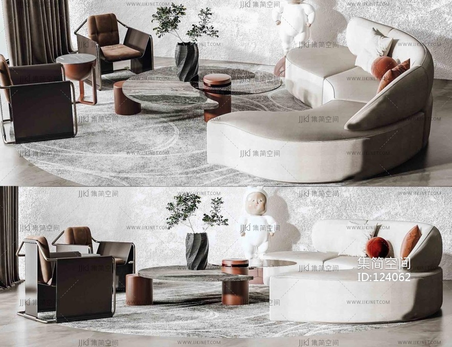 现代组合沙发 茶几 单椅 3d模型下载 [模型ID:124062]