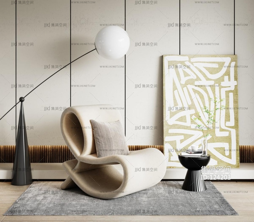 侘寂风单人沙发 3d模型下载 [模型ID:124203]