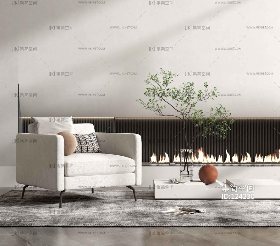 现代单人沙发 3d模型下载 [模型ID:124230]