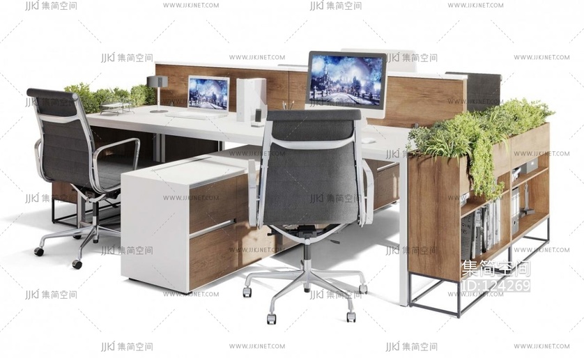 现代办公桌椅,员工工位卡位 3d模型下载 [模型ID:124269]