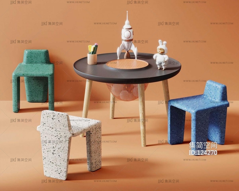 现代儿童桌椅 3d模型下载 [模型ID:124270]