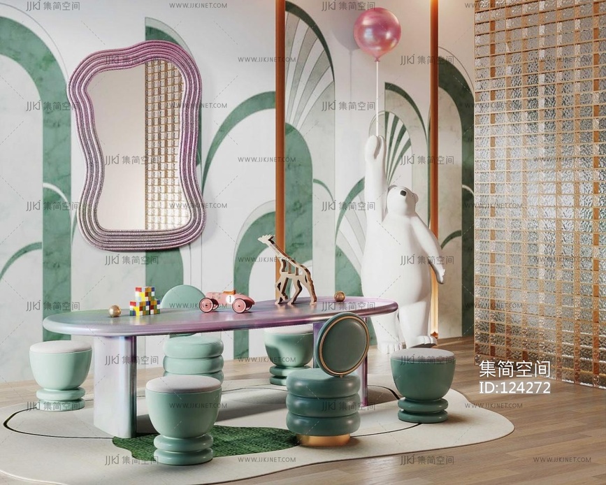 现代儿童桌椅 3d模型下载 [模型ID:124272]