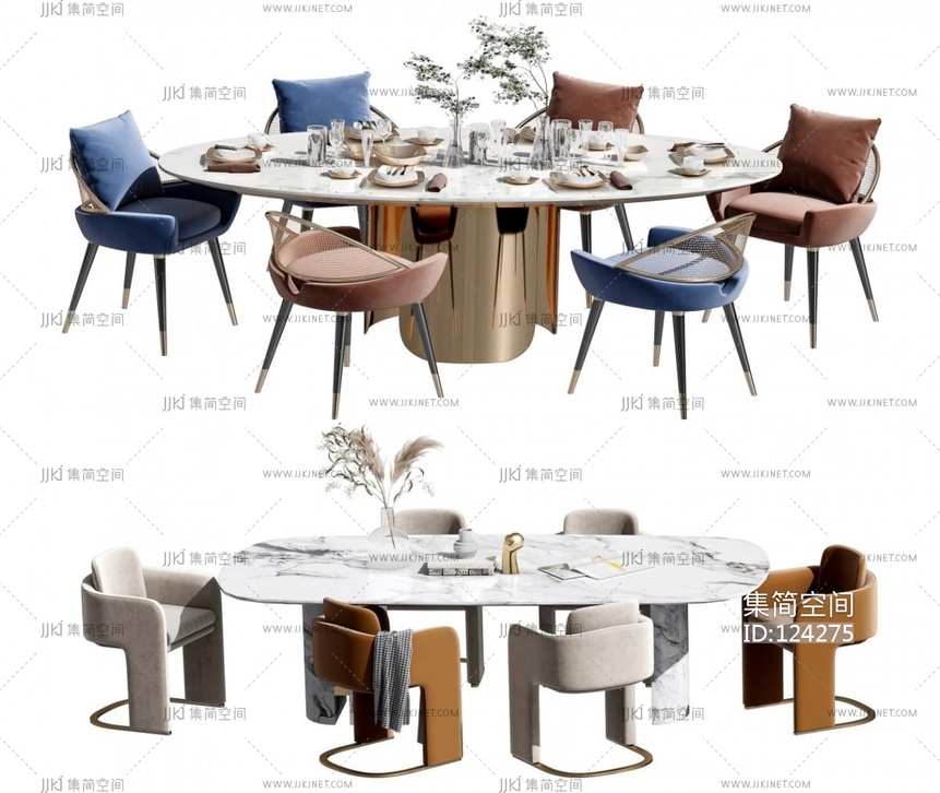 现代餐桌椅组合 3d模型下载 [模型ID:124275]