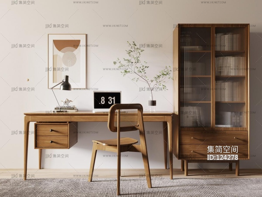 北欧书桌椅书柜 3d模型下载 [模型ID:124278]