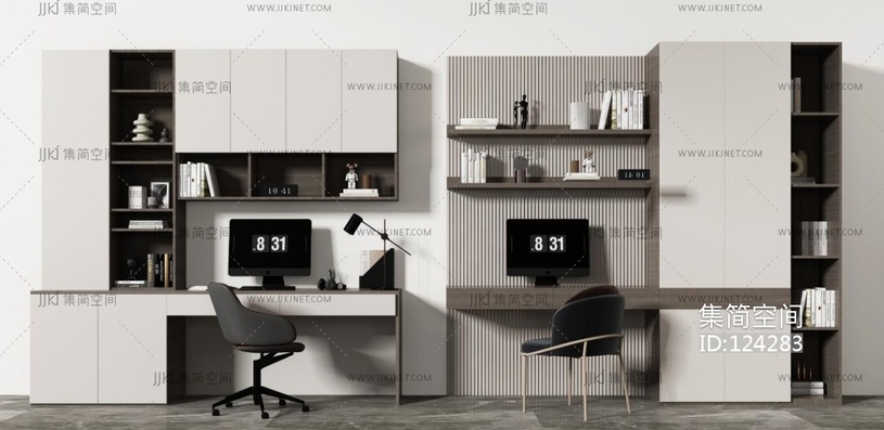 现代书桌书柜一体 3d模型下载 [模型ID:124283]