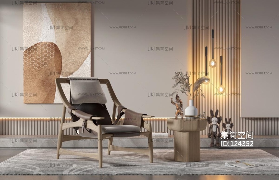 现代单椅休闲椅装饰画组合 3d模型下载 [模型ID:124352]