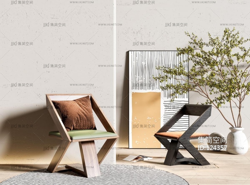 现代休闲椅,花盆盆栽 3d模型下载 [模型ID:124357]