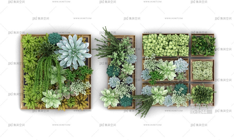 青瓷花盆中的树枝花束,植物插画3D模型cr3d模型下载