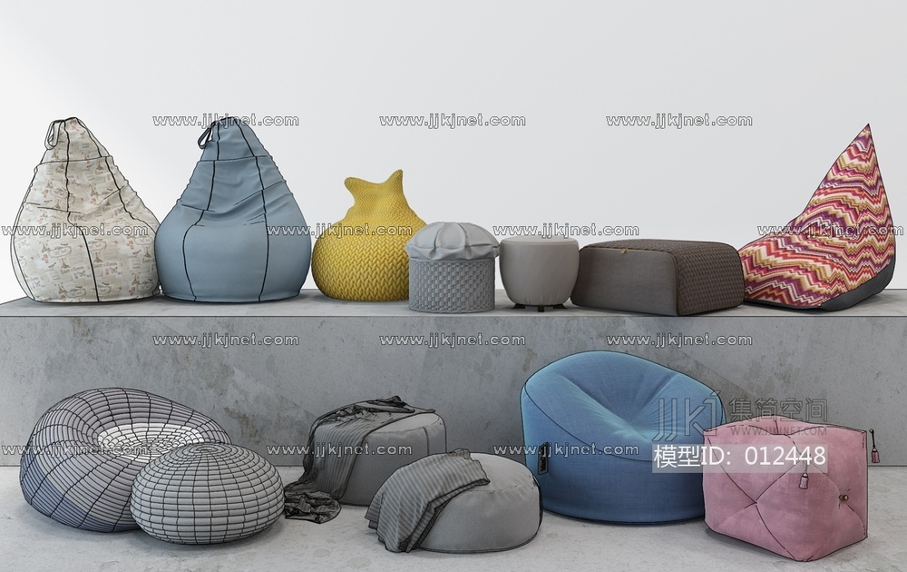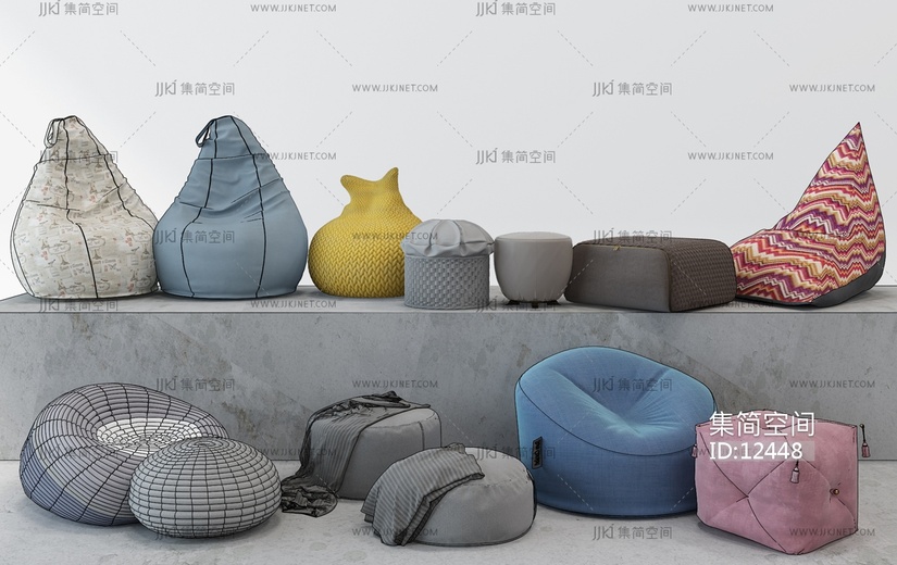 05现代懒人沙发_米灰色懒人沙发3D模型vrrr3d模型下载