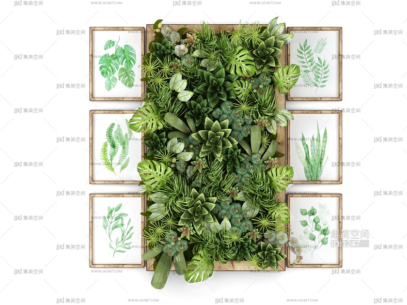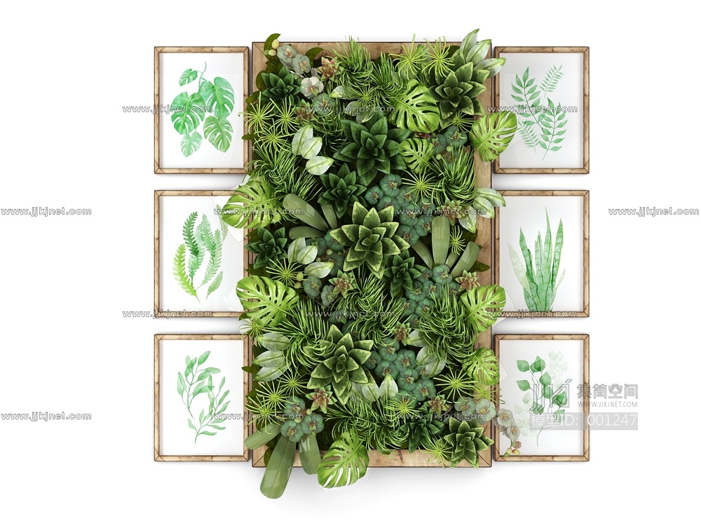 青瓷花盆中的树枝花束,植物插画3D模型cr3d模型下载