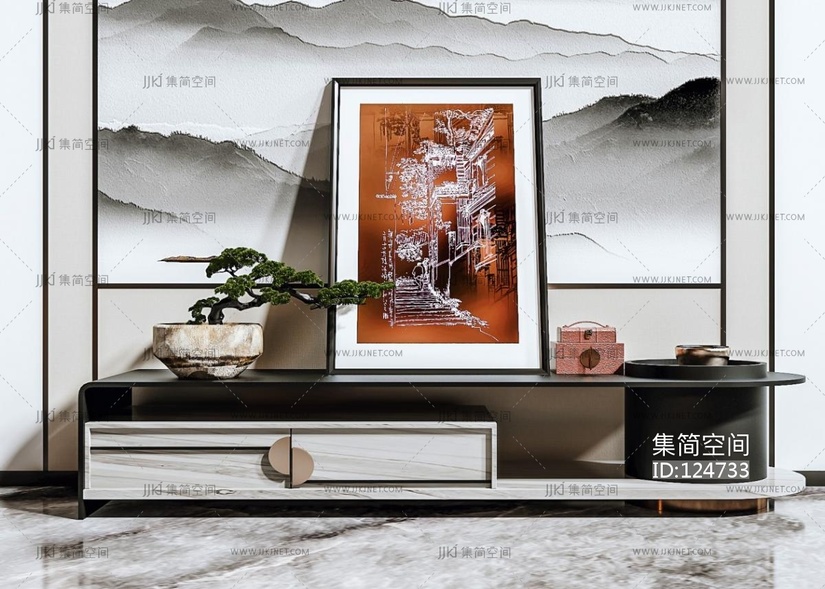 新中式电视柜 3d模型下载 [模型ID:124733]