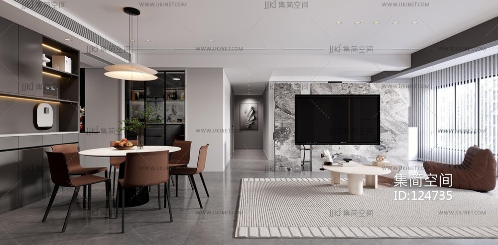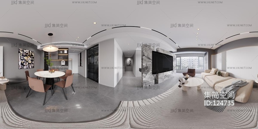 中古风客厅,美式客厅,圆形茶几,装饰画,移动电视,3d模型下载